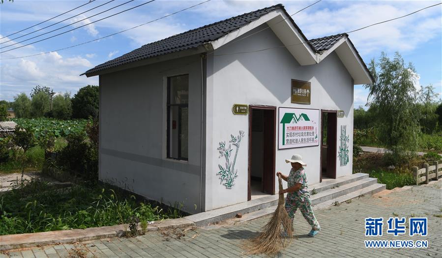 鄂州市长港镇峒山村村民在打扫卫生(8月6日摄)。新华社记者 程敏 摄