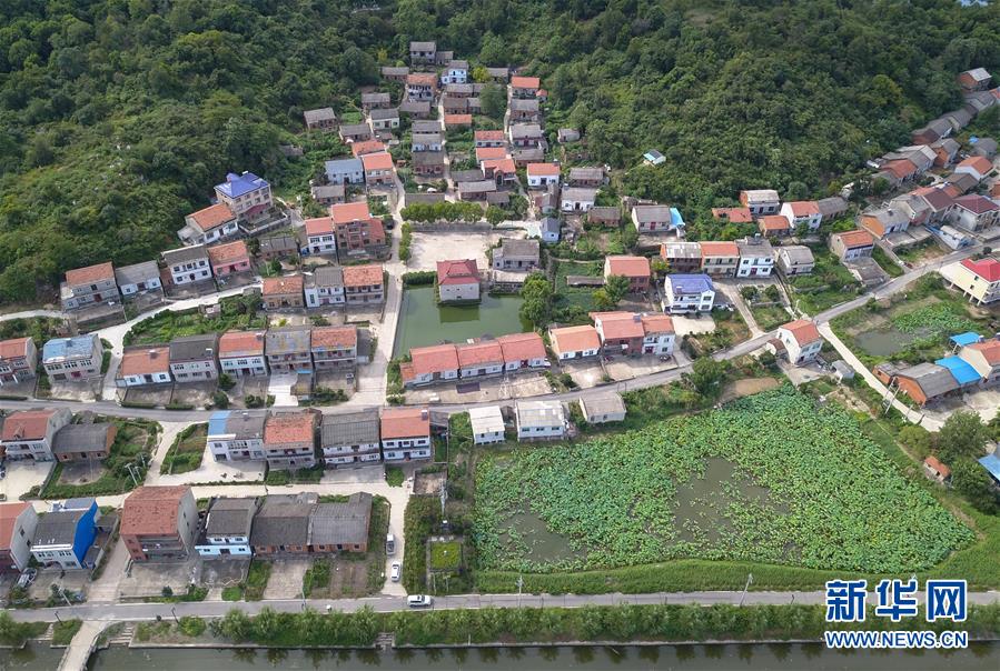 鸟瞰鄂州市长港镇峒山村(8月6日摄,无人机照片)。新华社记者 程敏 摄