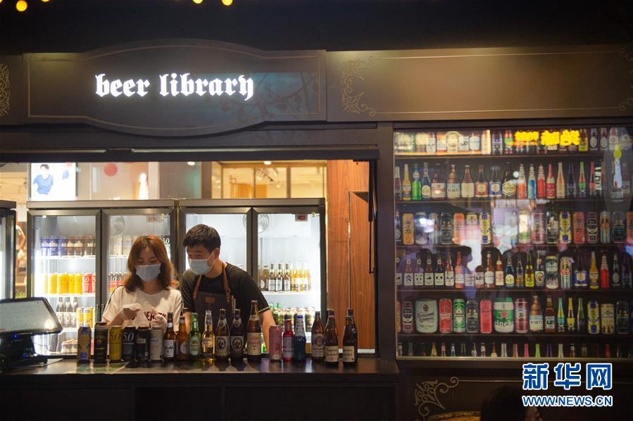 这是8月8日晚在望京小街商业街拍摄的一家啤酒商店。新华社记者 陈钟昊 摄