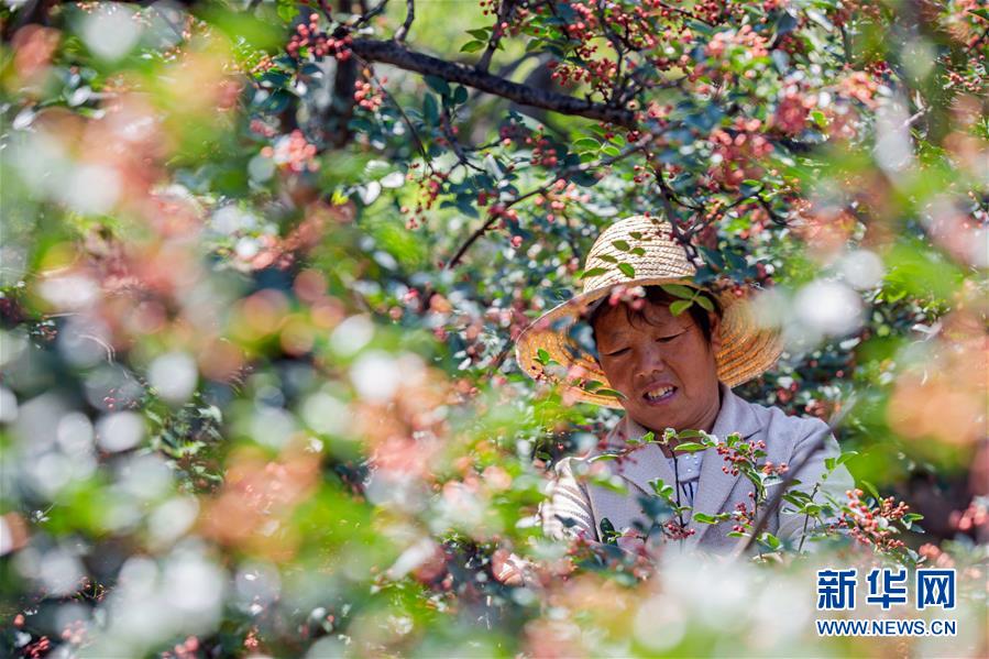 8月9日,武安市徘徊镇后李甲村农民在花椒种植基地采摘花椒。近日,河北省武安市花椒进入收获季节,当地农民抢抓农时,花椒种植基地里一派忙碌景象。近年来,武安市将花椒产业作为脱贫增收的重要抓手,因地制宜扩大花椒种植规模。目前,全市花椒种植面积约12万亩。新华社记者王晓摄。