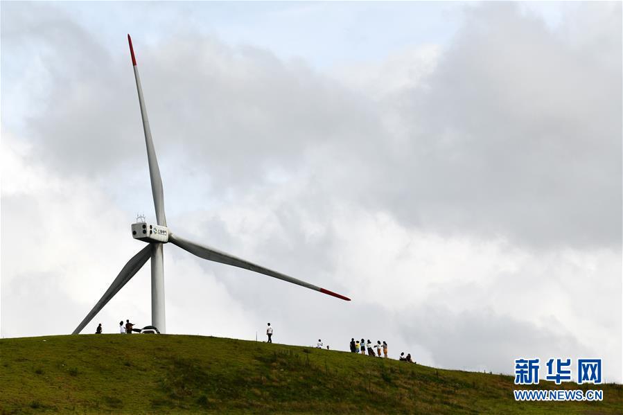 8月8日,游客在贵州省龙里油画大草原旅游观光。近日,贵州省黔南布依族苗族自治州龙里县境内气候宜人,龙里油画大草原、“龙门镇”武侠文化主题景区等景点吸引众多游客前来观光旅游。新华社记者杨文斌摄。
