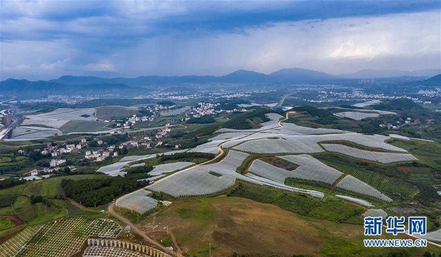 这是8月8日拍摄的昭通超越万亩苹果基地(无人机照片)。近年来,云南省昭通市确立以苹果产业为主导的现代农业产业发展战略。目前,该市苹果种植面积近80万亩,覆盖全市20余个乡镇,果农种植苹果年人均收入4000元以上,推动30多万果农依托苹果产业实现脱贫致富,半城苹果满城香的“苹果之城”正在乌蒙山区奋力崛起。新华社记者江文耀摄。