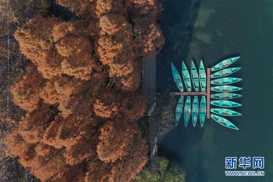 杭州西湖景区杨公堤附近的景色(2019年12月13日摄,无人机照片)。新华社记者黄宗治摄。