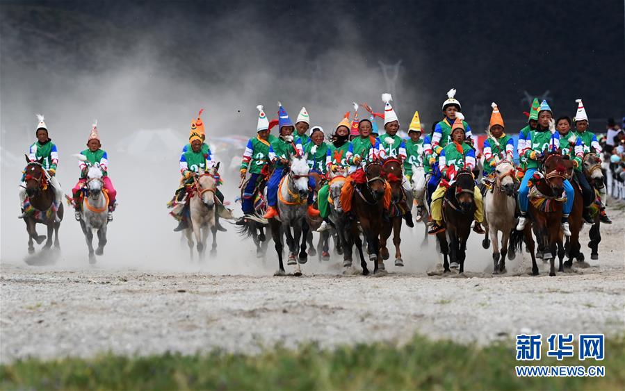 8月10日,骑手驰骋在当雄县赛马场。