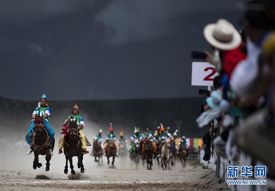 8月10日,骑手驰骋在当雄县赛马场。新华社记者普布扎西摄。