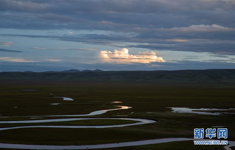 夕照下的泥拉坝湿地一角(8月9日摄)。新华社记者江宏景摄。