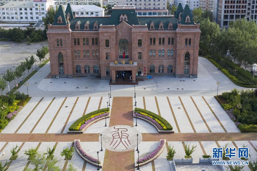 这是8月8日在抚远市拍摄的鱼文化博物馆(无人机照片)。鱼文化博物馆主要展示了黑龙江和乌苏里江流域的水生物和生态。新华社记者谢剑飞摄。