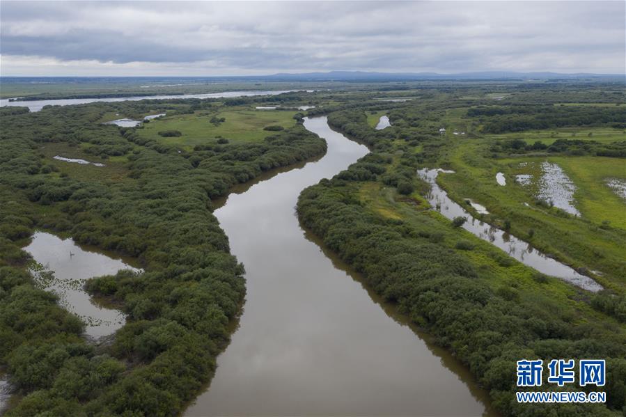 这是8月9日拍摄的黑瞎子岛国家级自然保护区景象(无人机照片)。黑瞎子岛国家级自然保护区主要保护对象包括黑瞎子岛原始的湿地生态系统及丹顶鹤、东方白鹳、黑熊等珍稀动物。新华社记者谢剑飞摄。