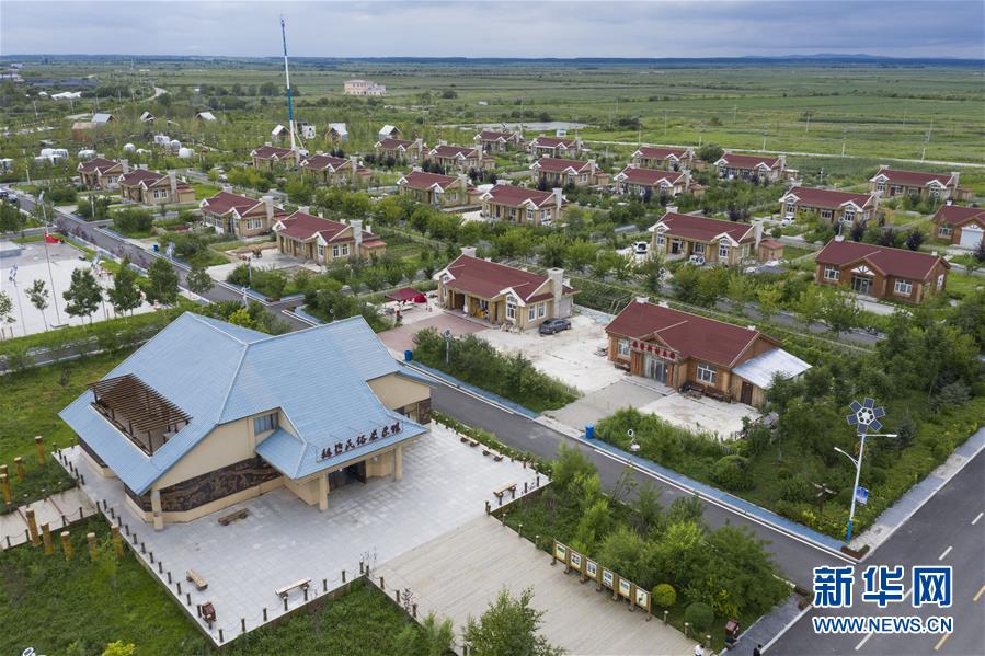这是8月9日拍摄的抓吉赫哲族村(无人机照片)。抓吉赫哲族村面积1.3平方公里,是赫哲族“三乡五村”聚居地之一。近年来,抓吉赫哲族村在抚远市“乌苏里船歌风光带”框架下,大力发展民俗文化旅游产业。新华社记者谢剑飞摄。