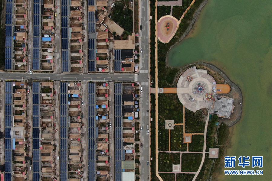 这是8月11日拍摄的尖扎县昂拉乡德吉村全貌(无人机照片)。地处黄河岸边的青海省黄南藏族自治州尖扎县昂拉乡德吉村是一个易地搬迁村,2017年搬迁完成后,德吉村依托区位优势,积极探索扶贫易地搬迁与乡村振兴战略相结合,培育以乡村旅游为龙头,文化、光伏等产业深度融合的扶贫特色产业。如今的德吉村,休闲广场、码头、露天沙滩、花海、农家乐、小吃广场等旅游产业项目一应俱全。2020年7月,文化和旅游部、国家发展改革委确定了第二批拟入选全国乡村旅游重点村名单,德吉村名列其中,成为当地的旅游名片。新华社记者张龙摄