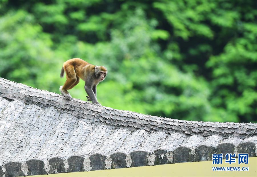 这是8月11日拍摄的温塘河岸边的野生猕猴。近年来,位于重庆市渝北区统景镇的温塘河两岸植被不断优化,生态环境持续改善,吸引越来越多的野生猕猴聚集于此。新华社记者王全超摄