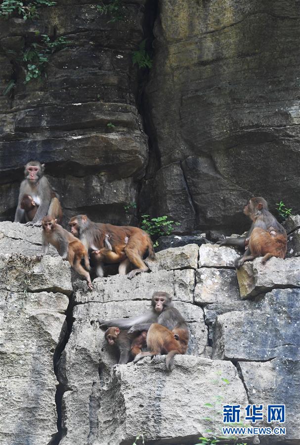 这是8月11日拍摄的温塘河岸边的野生猕猴。近年来,位于重庆市北区统景镇的温塘河两岸植被不断优化,生态环境持续改善,吸引越来越多的野生猕猴聚集于此。新华社记者王全超摄