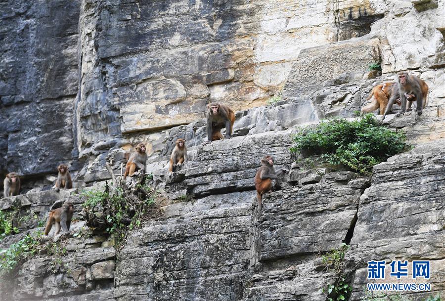这是8月11日拍摄的温塘河岸边的野生猕猴。近年来,位于重庆市渝北区统景镇的温塘河两岸植被不断优化,生态环境持续改善,吸引越来越多的野生猕猴聚集于此。新华社记者王全超摄