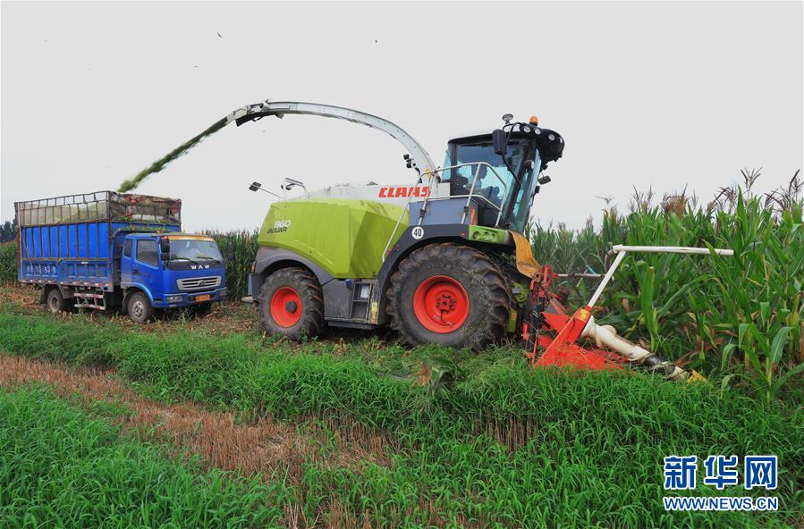 8月11日,滦南县马城镇湛店子村的农民使用大型机械收获青贮玉米。近日,河北省滦南县的12万亩青贮玉米陆续开始收获,为当地奶牛养殖提供新鲜优质饲料。作为河北省奶牛养殖大县,滦南县近年来大力推广奶牛青贮玉米喂养模式,引导农民种植青贮玉米,促进农民增收。新华社记者杨世尧摄