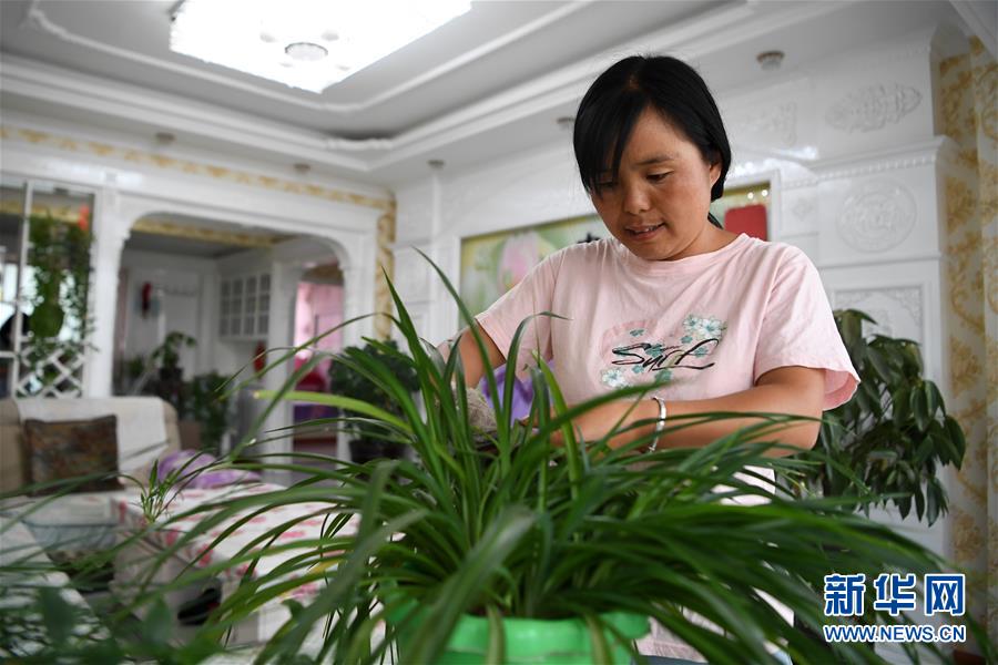 8月11日,在甘肃省临夏回族自治州临夏县土桥镇易地扶贫搬迁安置点,搬迁户杨喜梅在家中收拾家务。近年来,甘肃省临夏回族自治州临夏县把易地扶贫搬迁作为打赢脱贫攻坚战的重要任务,科学推进易地扶贫搬迁和脱贫攻坚工作。为了让搬迁群众能够安居乐业,当地政府注重扶持后续产业发展,引导搬迁群众发展日光温室、布鞋加工、观光农业、特色种养殖等产业,帮助搬迁群众实现就近就业、拓宽增收渠道,确保搬迁群众“搬得出、稳得住、有事做、能致富”。新华社记者陈斌摄