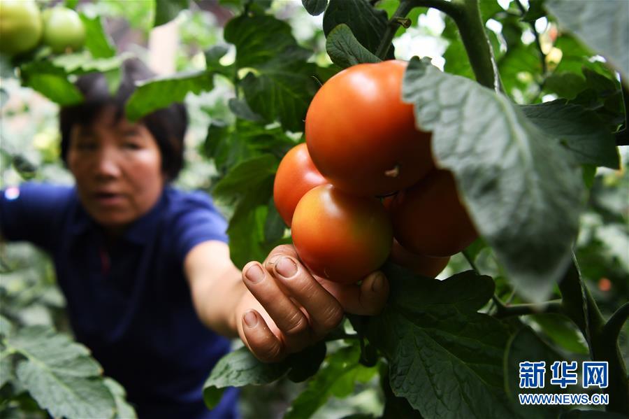 8月11日,在甘肃省临夏回族自治州临夏县先锋乡前韩村,搬迁户韩贵兰在日光温室内采摘西红柿。近年来,甘肃省临夏回族自治州临夏县把易地扶贫搬迁作为打赢脱贫攻坚战的重要任务,科学推进易地扶贫搬迁和脱贫攻坚工作。为了让搬迁群众能够安居乐业,当地政府注重扶持后续产业发展,引导搬迁群众发展日光温室、布鞋加工、观光农业、特色种养殖等产业,帮助搬迁群众实现就近就业、拓宽增收渠道,确保搬迁群众“搬得出、稳得住、有事做、能致富”。新华社记者陈斌摄