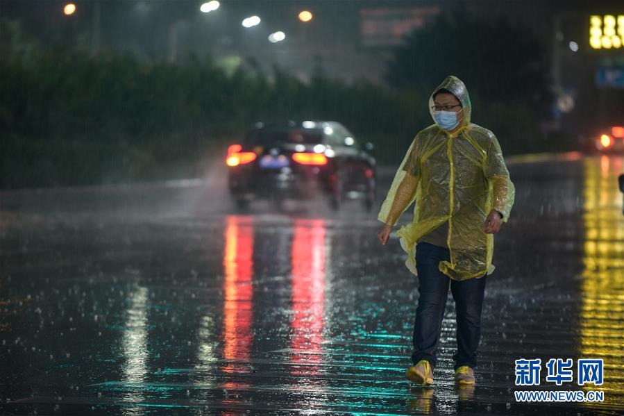 8月12日,北京市大兴区亦庄镇,市民冒雨出行。新华社记者 彭子洋 摄