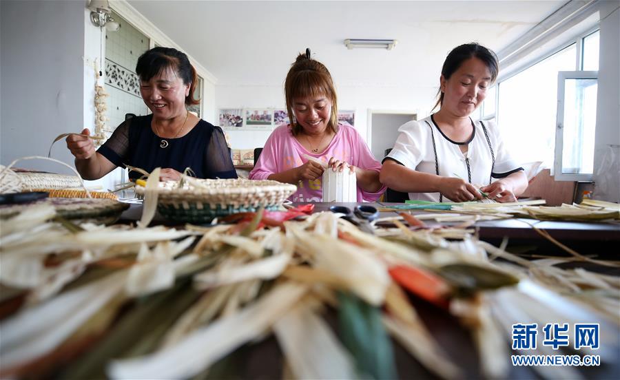 8月12日,参加草编合作社的村民使用稻草秆和玉米棒叶编制草编工艺品。近年来,吉林省洮南市福顺镇春华村在脱贫攻坚工作中坚持以特色产业扶贫为重点,推动稻田养蟹特色种养殖、手工艺草编等扶贫项目发展,通过合作社等形式构建精准防返贫长效机制,帮助困难群众实现稳定增收。新华社记者 雒圆 摄