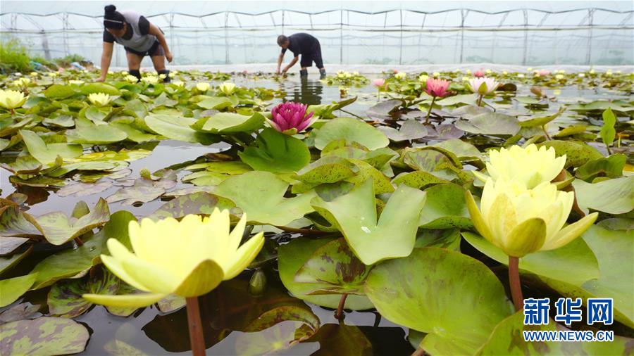 8月12日,河北省滦州市茨榆坨镇草塘坨村花农在大棚内打理种植的莲花。近年来,河北省滦州市茨榆坨镇结合市场需求,引导农民发展玫瑰、莲花等花卉规模化种植,通过“线上”和“线下”相结合的销售模式,进入北京、天津等地花卉市场,在扮靓城乡的同时为种植户带来良好收益。新华社记者 牟宇 摄