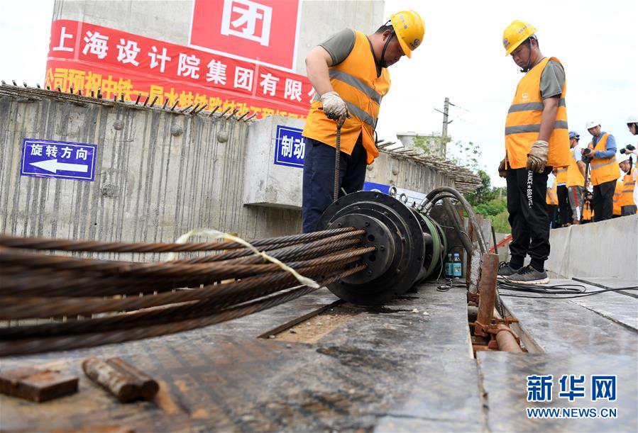 8月12日,中铁一局施工人员在转体梁转体施工现场作业。新华社记者 刘军喜 摄