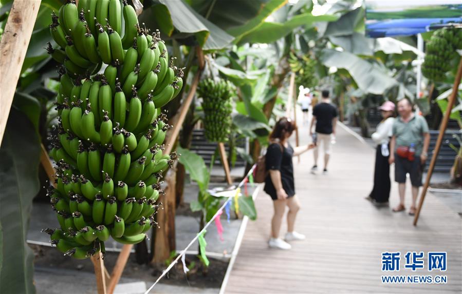 在吉林省永吉县万昌镇宇丰红果木瓜产业园,游客在大棚内合影留念(8月12日摄)。新华社记者 许畅 摄
