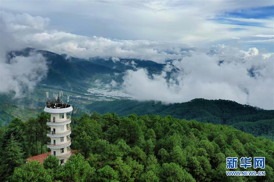 邛海泸山国家级风景名胜区掩映在云雾中(8月13日摄,无人机照片)。 新华社记者 李贺 摄