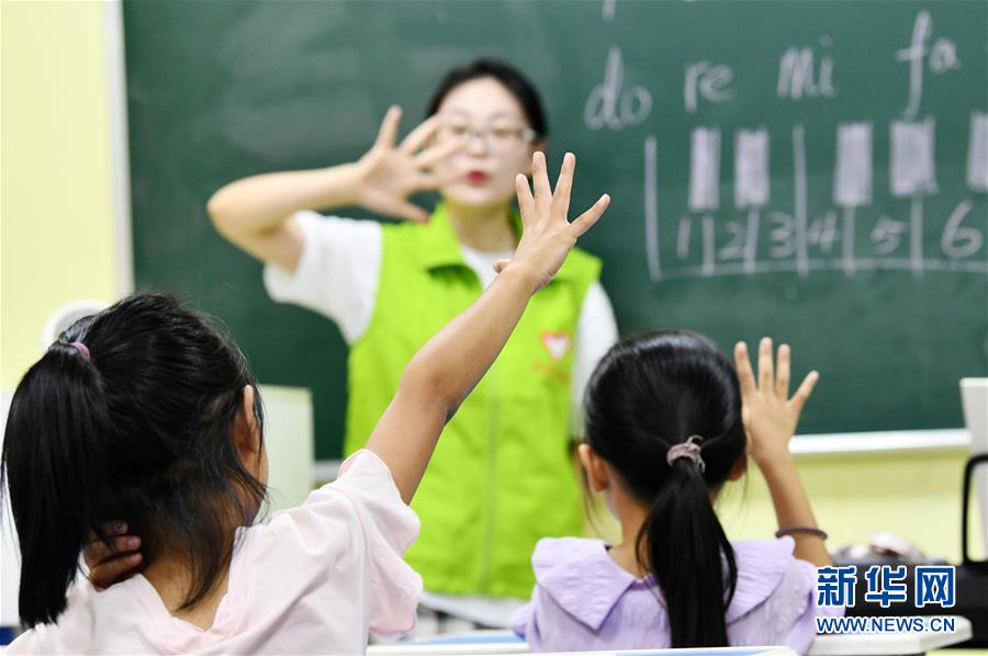 8月13日,贵州省思南县双塘街道丽景社区易地扶贫搬迁安置点的孩子们在上音乐课。新华社记者杨文斌摄