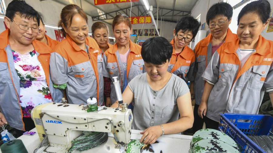 7月13日,河北省内丘县一家玩具生产企业工人在加工毛绒玩具。