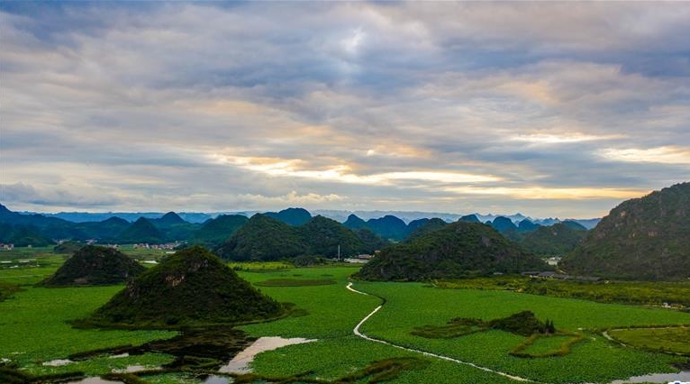 近日,云南省文山壮族苗族自治州丘北县普者黑国家湿地公园山青水秀,风景优美,吸引众多游人前来观光。