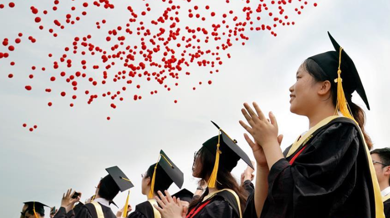 由于疫情防控需要,仅少量在校毕业生在中国政法大学昌平校区礼堂现场参加毕业典礼,更多毕业生通过线上直播参与。
