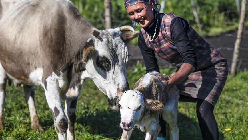 时值盛夏,新疆西天山水草丰美,夏牧场上牛羊成群。和煦的阳光普照草场,也照进牧民心中。