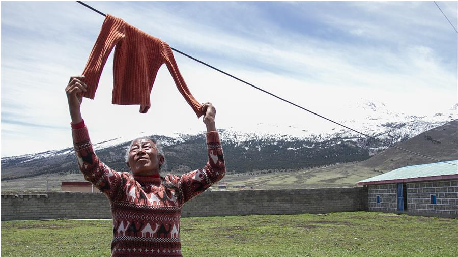 5月30日,四川甘孜藏族自治州理塘县奔戈乡卡灰村村民洛登展示自家的“脱贫账本”。