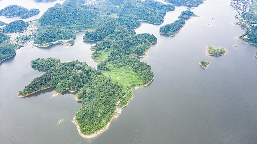 夏至时节,贵州省清镇市红枫湖景区草木苍翠,秀丽的湖光山色吸引不少游客前来游玩。