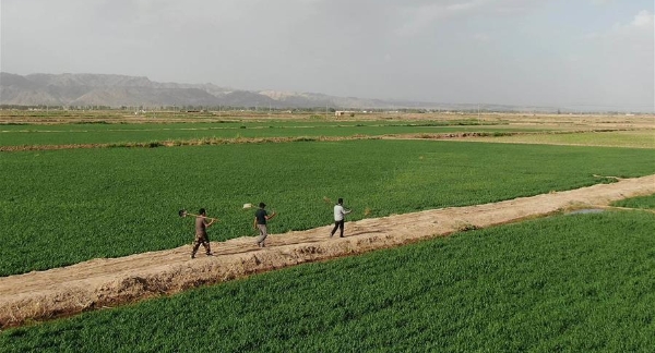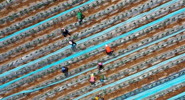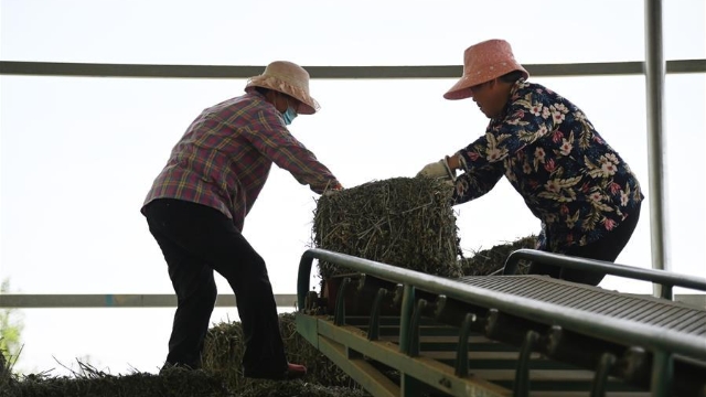 5月28日,内蒙古巴彦淖尔市临河区新华镇新乐村村民在田间劳作。