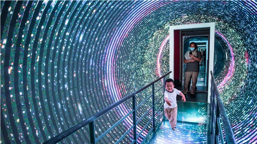 6月1日是“六一”国际儿童节,不少家长带着小朋友来到贵州科技馆游玩,用寓教于乐的方式让孩子们度过节日。