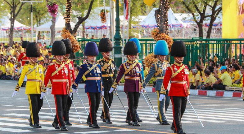 5日傍晚,哇集拉隆功乘轿从大王宫出发,前往附近的卧佛寺等王家寺庙参加相关仪式。