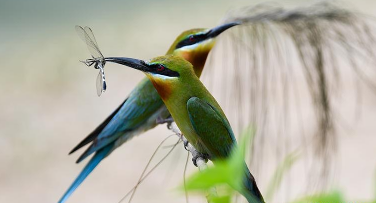 近日,不少栗喉蜂虎来到海南省海口市筑巢繁殖,据海口畓榃湿地研究所工作人员统计,目前来到海口的栗喉蜂虎已有近200只。