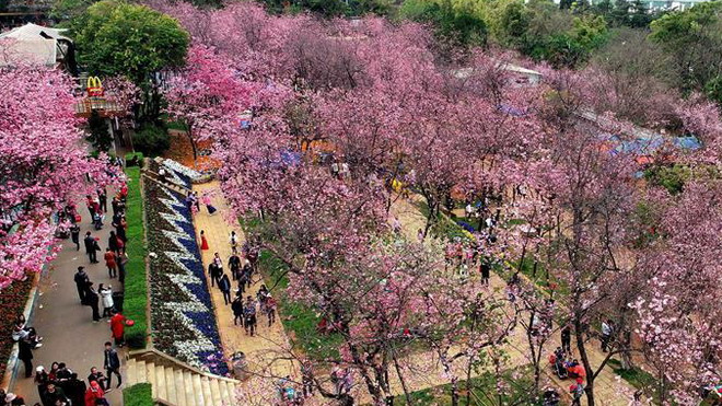 随着气温逐渐回升,北京玉渊潭公园上千株早樱相继绽放,进入最佳观赏期。