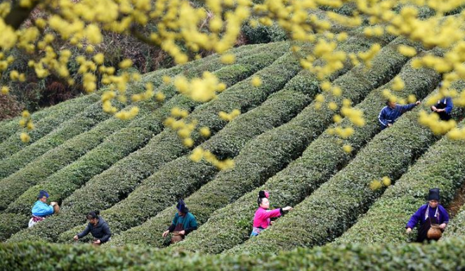 近日,随着气温回升,贵州省黔东南苗族侗族自治州丹寨县“扶贫茶园”的春茶陆续进入采摘期。