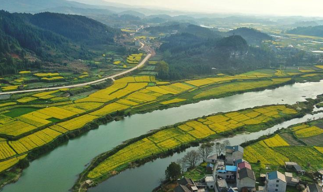 春分将至,贵州各地成片的油菜花渐次绽放,如同金色的地毯铺上云贵高原。