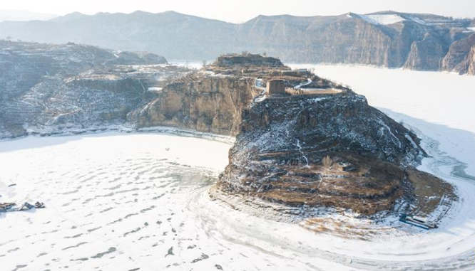 这是2月17日无人机拍摄的老牛湾雪景。黄河老牛湾位于山西省和内蒙古自治区交界处。