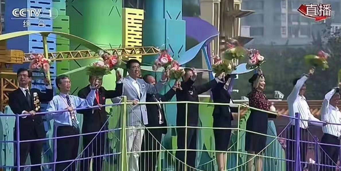 第七届全国道德模范、深企中建钢构华南大区总工程师陆建新受邀乘坐“春潮滚滚”彩车,经过天安门广场。