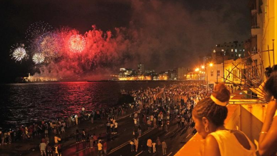 当地时间2019年11月15日,古巴哈瓦那,当地燃放烟花庆祝哈瓦那建城500周年。2019年11月16日是古巴首都哈瓦那建城500周年纪念日。