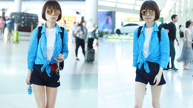 气场两米八!秦海璐机场语聊忙不停 工装风穿搭酷味十足