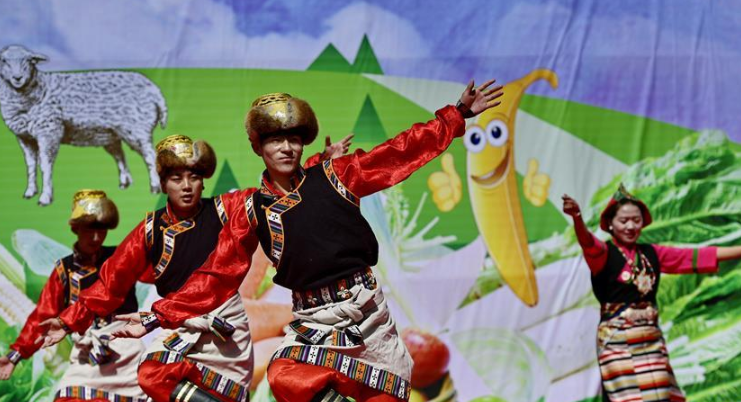 近日,西藏日喀则市白朗县1.46万亩瓜果蔬菜喜获丰收。百姓们在县里的丰登广场载歌载舞,庆祝白朗县第九届果蔬采摘节。