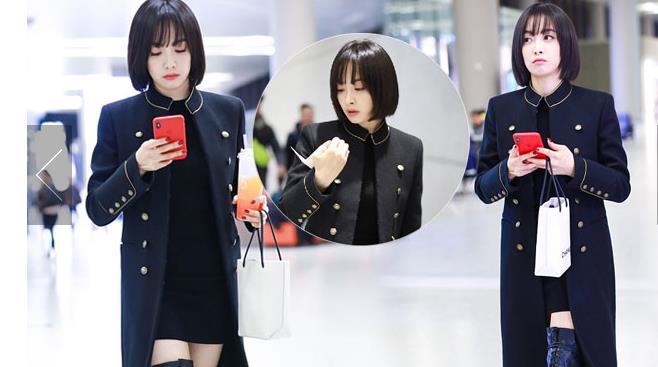 2018年12月3日,上海,秦岚亮相机场。潮味棉服亮相机场变酷女孩,口罩遮面露甜笑心情靓。