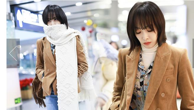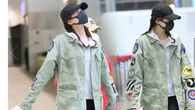 秦岚潮味棉服亮相机场 口罩遮面露甜笑