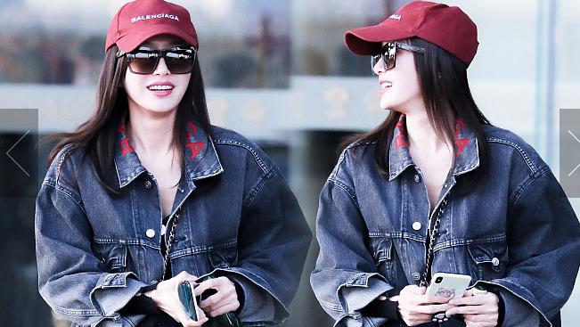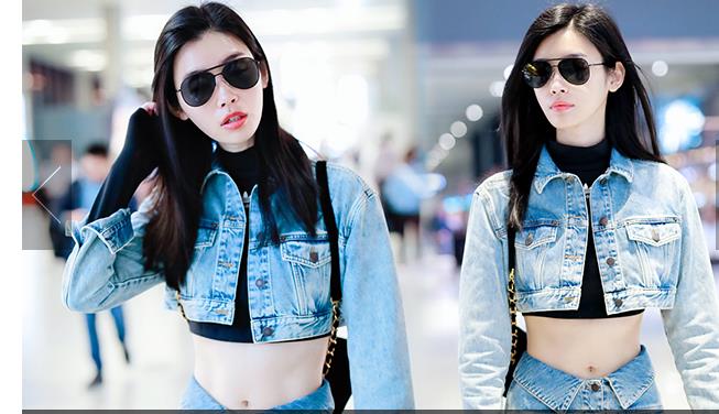 奚梦瑶一身帅气牛仔装 露细腰长腿显好身材