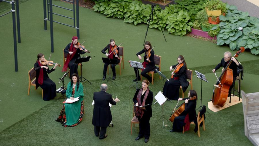 5月30日,奥地利首都维也纳的一家名为“时代精神”的酒店为迎接“解封”后恢复营业,在其庭院内举办“窗口音乐会”。