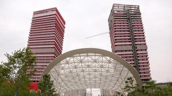 武汉两栋在建大楼外形奇特 酷似高耸书堆